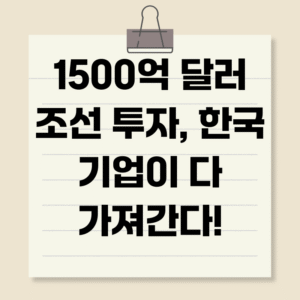 미국의 1500억 달러 투자는 한국 조선 산업에 다음과 같은 구체적인 영향을 미칠 것으로 예상됩니다.