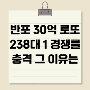 최근 반포에서 분양한 아파트가 ’30억 로또’라는 별칭을 얻으며 238대 1이라는 기록적인 경쟁률을 기록했습니다. 이처럼 높은 경쟁률은 단순한 행운을 넘어, 부동산 시장의 특정 현상과 깊숙이 연결되어 있습니다. 본 글에서는 왜 반포 아파트 분양에 이토록 많은 사람들이 몰렸는지 심층적으로 분석하고, 이러한 현상이 우리에게 주는 시사점을 살펴보고자 합니다.