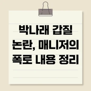 최근 개그우먼 박나래씨의 갑질 논란이 불거지면서 연예계 매니지먼트의 어두운 면이 수면 위로 떠올랐습니다. 이번 사건은 단순히 개인적인 문제가 아닌, 연예인과 매니저 간의 불공정한 관계와 갑질 문화에 대한 사회적 관심을 촉구하는 계기가 되고 있습니다. 본 글에서는 디스패치의 단독 보도를 토대로 박나래 갑질 논란의 핵심 내용과 그 배경, 그리고 우리 사회에 던지는 시사점을 심층적으로 분석하고자 합니다.